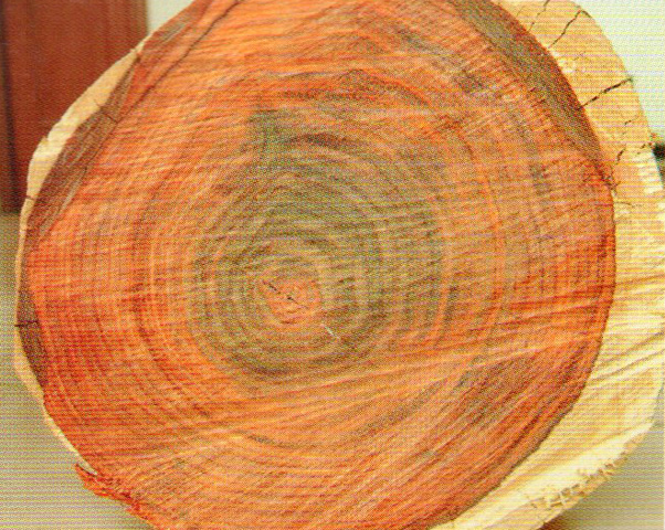 心邊材區(qū)別明顯,心材新切面紫紅褐或暗紅褐.常帶黑褐或栗褐色深條紋(俗稱黑筋).非常漂亮;邊材灰白色。生長(zhǎng)輪不明顯或略明顯。