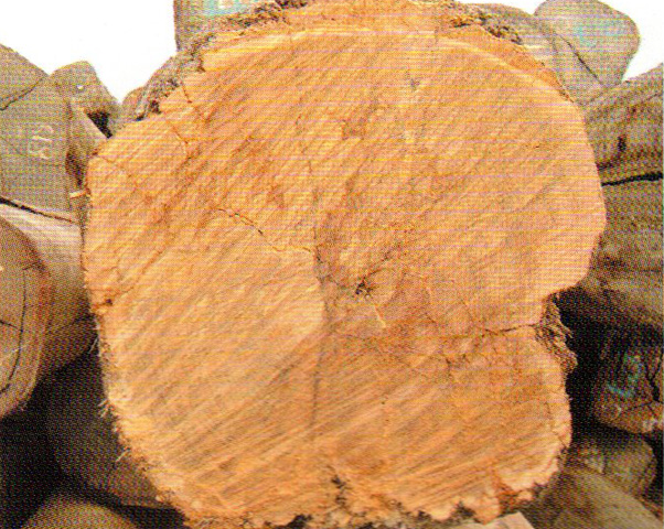 心邊材區(qū)別明顯。心材淺黃褐色,久則轉(zhuǎn)為巧克力褐色。邊材窄,金黃色。生長(zhǎng)輪略可見(jiàn)。