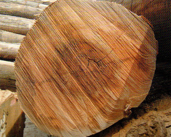 心邊材區(qū)別不明顯。木材淺粉紅褐色至淺紅褐色。生長(zhǎng)輪不明顯。