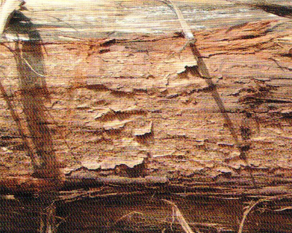 心邊材區(qū)別明顯。心材暗褐色,常帶有深褐色至黑色同心圓狀的條紋,略似核桃木。邊材很寬,灰黃色或淺玫瑰色,寬可達20cm以上。生長輪略明顯、較均勻。